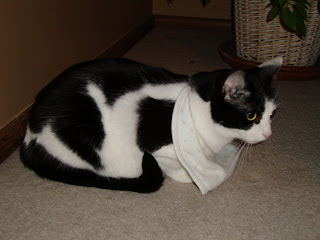 Cappy and Jackson have become friends over the past couple of months. Cappy likes to be around Jackson, will come running when he's crying and likes to sit next to him when he's taking a bottle. Here is Cappy trying out one of his bibs. Needless to say, she didn't like it.